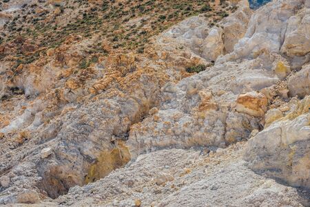 Rocks with sulfur crystals at Nisyros volcano Stefanos crater Greece