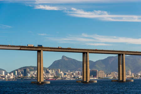 Rio - Niteroi Bridge Crossing Guanabara Bay and Rio de Janeiro City Behind With the Corcovado Mountain