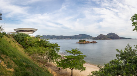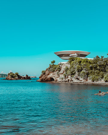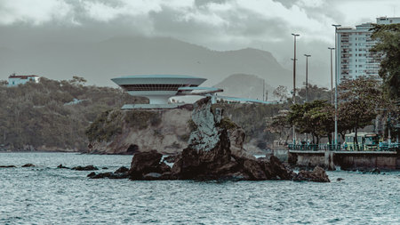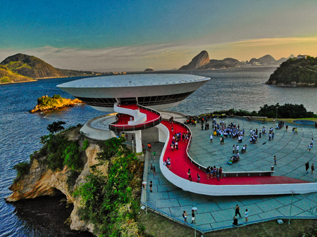 Niterói, Rio de Janeiro, Brazil - CIRCA 2021: The Museum of Contemporary Art in Niterói was designed by Oscar Niemeyer. Voted one of the 10 most influential works of architecture in the last 50 years