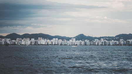 Downtown of Niteroi city with its buildings and Guanabara bay seen from Rio de Janeiro
