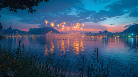A fireworks display is taking place in Rio de Janeiro (Brazil).