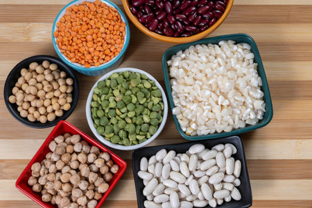 AI Generated. Colorful Display of Various Legumes in Bowls