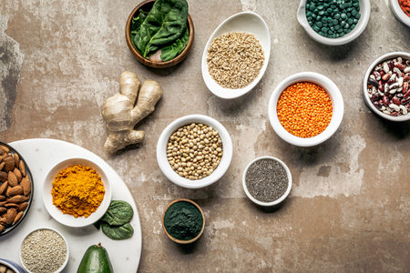 flat lay superfoods spices legumes