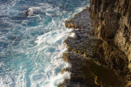 Aerial view of waves by the shore in Alghero coastline. Sardinia, Italy