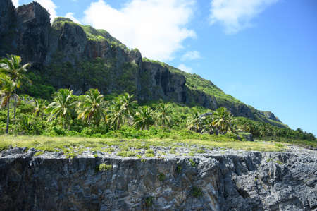 This photo shows how a rock protrudes from the fabulous jungle of the Dominican Republic. The rainforest of palms and other exotic plants is ideal for rock climbing. Its wild places of the Caribbean.