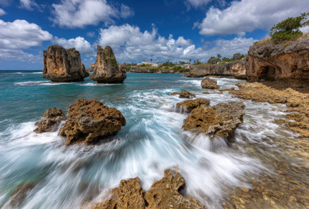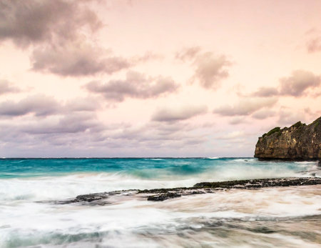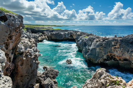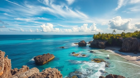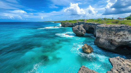 Discover a breathtaking coastal landscape featuring dramatic cliffs and vibrant turquoise waters. The scene captures the essence of nature's beauty and tranquility.