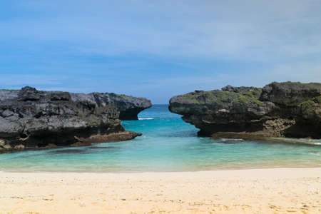 Beautiful nature of blue sea sand and white waves at Pantai Mandorak, Sumba, Indonesia