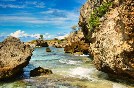 Beautiful seascape with rocks and sea waves. Composition of nature.
