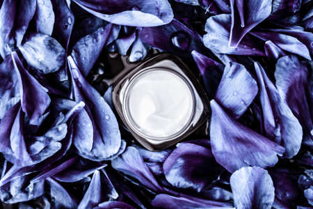 beauty cream jar and flower petals - cosmetics with flowers styled concept, elegant visuals