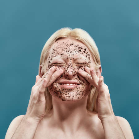 Oversize woman scrubbing and pore cleaning on face