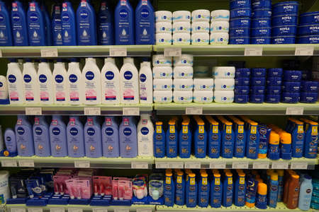 POZNAN, POL - DEC 5, 2018: Products of Nivea, a German personal care brand that specializes in skin- and body-care products. It is owned by Beiersdorf Global AG headquartered in Hamburg.