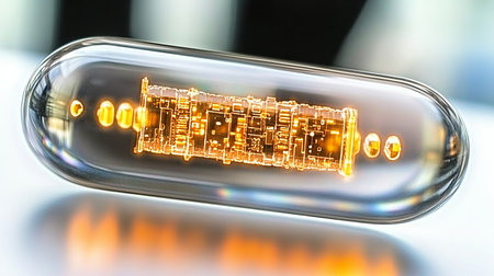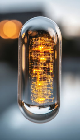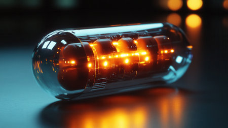 Futuristic Transparent Capsule Showcasing Illuminated Circuitry for Advanced Technology Presentation