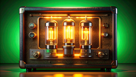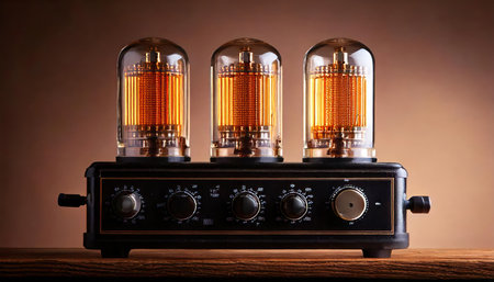 Three vacuum tubes glow with a warm, inviting light, powering a vintage amplifier.
