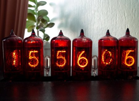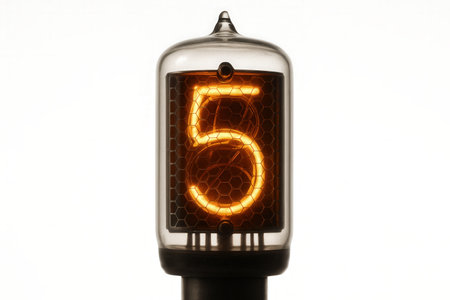 Glowing Number Five Inside Vintage Nixie Tube Display