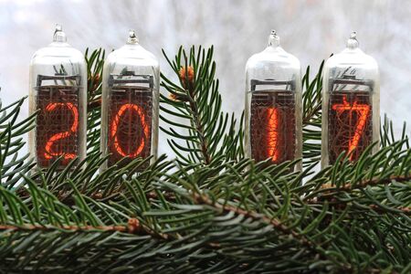Happy New 2022 Year. Vintage nixie clock with 2022.3d illustration