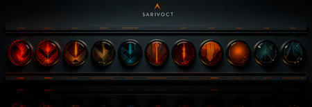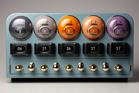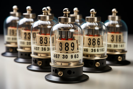 full set of numbers on vintage indicator lights gas lamps. Steampunk Dieselpunk Art Deco 3d Render