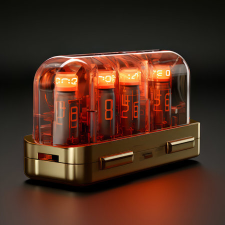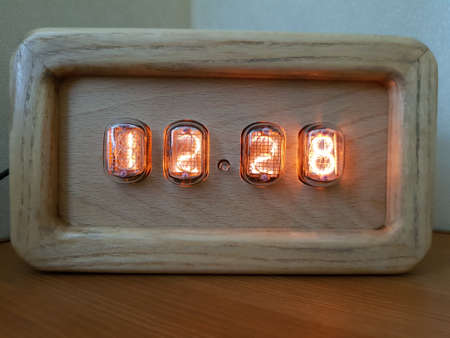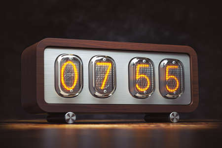 Vintage nixie alarm clock with 8 am. 3d illustration