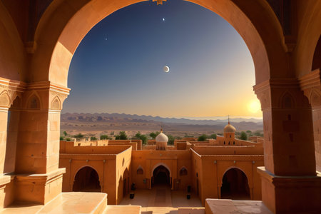 View of the A Moroccan landscape at Big moon in the A closed Arab