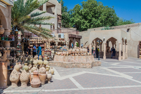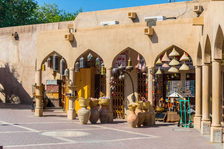 NIZWA, OMAN - MARCH 3, 2017: Pottery shops at the Souq in Nizwa, Oman