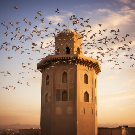 Majestic architecture of old monument with minaret, symbolizing spirituality generated by artificial intelligence