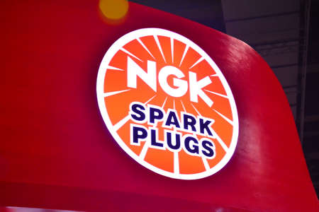 PASAY, PH - NOV. 6: NGK spark plugs sign at Manila Auto Salon on November 6, 2016 in SMX Convention Center, Pasay, Philippines.