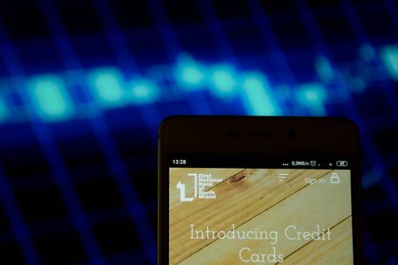 SPB, Russia - April 8, 2022: Raiffeisen bank red stock market. Financial default and loss. mobile phone