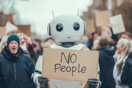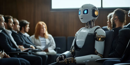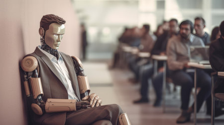 Future of Job Searches AI Robots as Candidates Awaiting Interviews in a Modern Workforce Setting