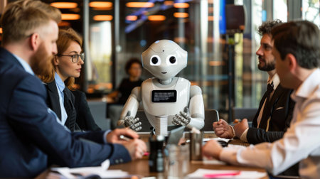 chatbot robot, asking humans questions and learning about the world, created with generative ai