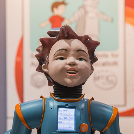 MILAN, ITALY - OCTOBER 22: SARACEN robot on display at Smau, international exhibition of information communications technology on OCTOBER 22, 2014 in Milan.