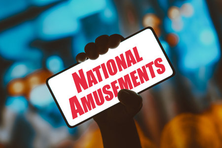 December 9, 2023, Brazil. In this photo illustration, the National Amusements logo is displayed on a smartphone screen
