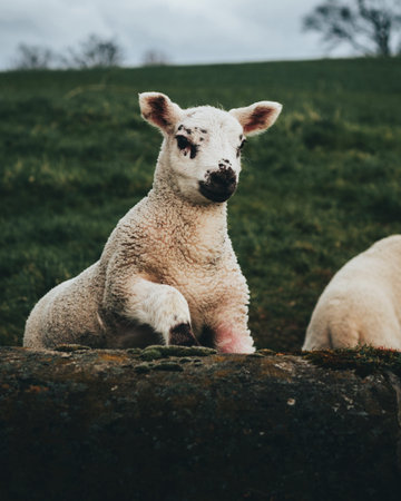 Spring Lambs and Sheep in Green Grassy Meadow, Yorkshire.