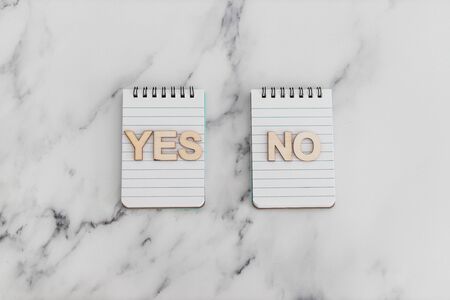 making a choice and facing doubts conceptual still-life, notepads with opposite Yes and No choices