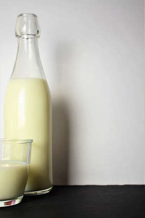 White milk still life in a glass bottle