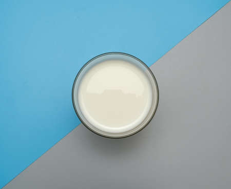 glass with milk on gray blue background