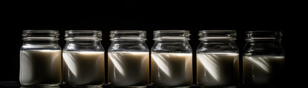 Jars Of Milkon Black Background Wde Panoramic