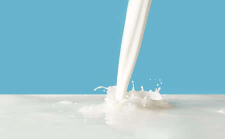 splashing milk on blue background, food and drink, dairy product