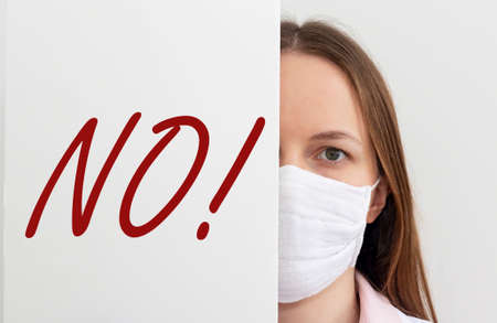 no sign word in doctor hands. Negative answer concept. No risk, no illness, no virus.