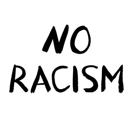 No racism vector poster. Wall graffiti painted text. Hand drawn lettering. Black textured letters on white background. For banner, poster, card, sticker