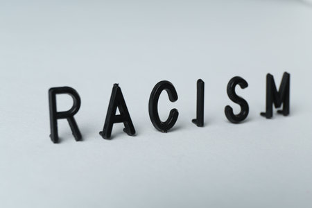 Word Racism on light grey background, closeup