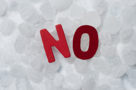 The word NO on granulated sugar. Sugar kills