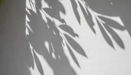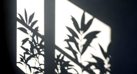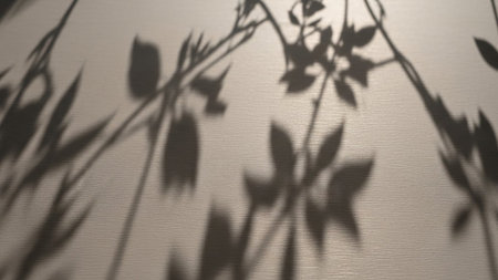 Soft, diffused shadows of plant branches and leaves are cast across a textured, light-colored surface.