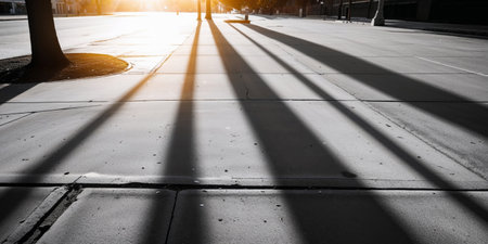 AI Generated. Long tree shadow stretching across sidewalk in late afternoon sunlight