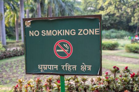 No Smoking sign in Lodhi Gardens (also known as Lodi Gardens) in New Delhi India
