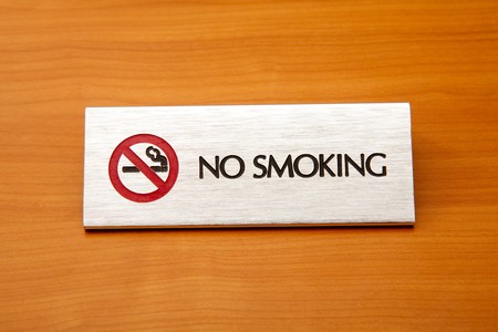 closeup no smoking sign on white paper with soft-focus and over light in the background
