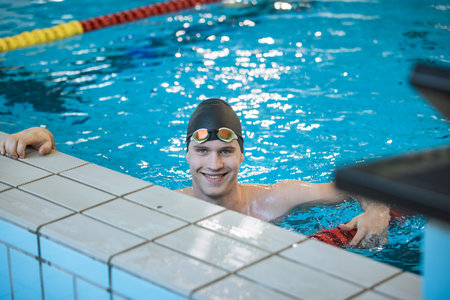 preparation of athletes to swim on swimming pool