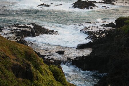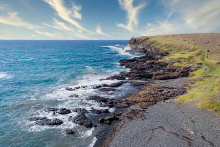 Rugged coastline with breaking waves of Nobbies, Phillip Island, Victoria, Australia