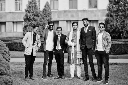 Portrait of a group of stylish people in white suits. A group of businessmen in white suits.
