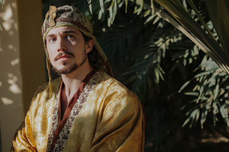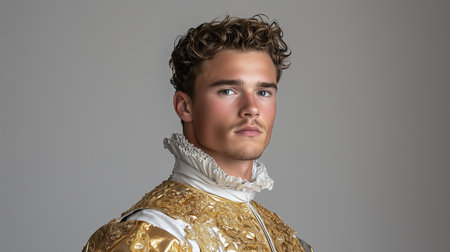 Portrait of a nobleman in gold-embroidered Renaissance attire. Historical and cultural significance