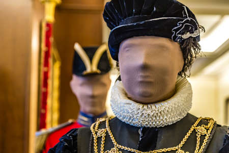 CASTEL GANDOLFO (ROME), ITALY - JANUARY 3, 2019: lights are enlightening mannequins in historical uniform in room of The Papal Palace of Castel Gandolfo