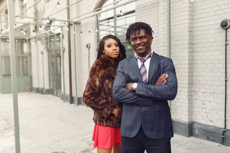 Young interracial couple hugging. Millennial lovers, african and white couple